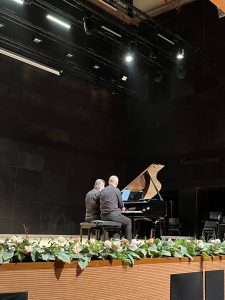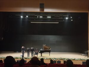 “Frigya’dan Troya’ya Piyano Buluşmaları” Projesinin ilk ayağı Çanakkale Onsekiz Mart Üniversitesi Müzik ve Sahne Sanatları Fakültesin’de gerçekleştirildi. Özgün Coşkuner, Fakı Can Yürük, Mustafa Okan Kızılay ve Aysel Gökçe Eryılmaz tarafından 5 Aralık cuma günü Rüveyde&Yüksel Ergen konser salonunda başarılı bir konser icra edildi. Konser öncesinde fuayede kahve ikramı ve Rezonans podcast tarafından hazırlanan müzik, piyano ve kültür üzerine sohbete katılarak merak edilenleri cevaplayan sanatçılar, F. Chopin, B.Tarcan, F. Yıldız’ın eserlerini seslendirdikleri konserde yoğun ilgi ile karşılandılar. 6 Aralık cumartesi günü ise ÇOMÜ MSSF Piyano Anasanat dalı öğrencilerinin katılıdığı Masterclass çalışması ile sanatçılar deneyimlerini paylaştılar. Ardından iyi dilekler ve tekrar buluşma dileğiyle vedalaşıldı.