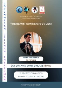Dünyaca ünlü “Theremin sanatçısı” Petr Theremin, 31 Ekim saat 14.30’da, Afyon Kocatepe Üniversitesi Devlet Konservatuvarı İbrahim Küçükkurt Salonu’nda, Öğr. Gör. Aysel Gökçe Eryılmaz’ın piyano eşliğiyle sahne alacak.